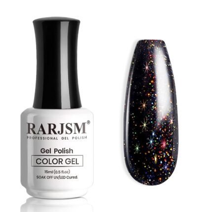 RARJSM Gel Nail Polish Black Glitter Sparkly Chunk…