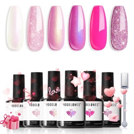 modelones Pink Glitter Gel Nail Polish Set, 6 Colo…