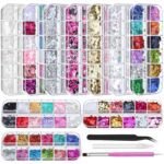Nail glitter decoration set:You will receive 10 boxes of nail glitter, in addition, 2 pens and 1 tweezer for precise application. Rich styles and large quantities allow you to create personalized nail art designs.