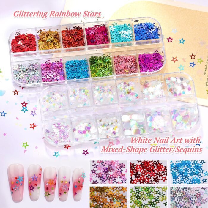 Multiple uses: Colorful nail art glitter is suitable for all kinds of nail art, face/hair decorations, mixing nail polish, you will get unique glitter DIY! It can also be used to make cards, shoes, phone cases, books, wallets, perfectly meet your various glitter craft needs, you can take them home as daily decorations or gifts for your friends.