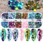 Various Colors: Package contents 12 colors chunky nail glitter flakes, Mixed colors glitter in a box, can protect it from spilling out, easy to store and carry.can protect it from spilling out, you can get pink, blue, green, purple etc. The colors vary from view angle and background.