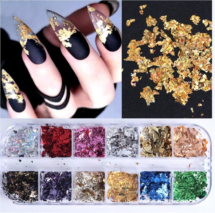 12 Colors Nail Art Glitter Foil Metal Leaf Flakes …