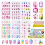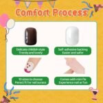 【Easy to use】Kids stick on nails are pre-glued, there is glue on the back of the nail, no need to stick extra glue, it is easy and convenient to stick, just choose the right size and stick it on the nail for about a minute. When you are ready to try other designs, soak them in warm water for 2 minutes, then gently peel them off from the side and the kids’ fake nails will come off without damaging the original nails.