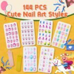 【Colours & Quantity】 This lovely kids press on nail set comes with 6 boxes of charming false nails. Each box contains 24 sets of short, stylish false nails in various sizes, up to 144 in total. The rich colour palette and large variety of pieces offer endless creative possibilities for kids to have fun, whether it’s for individual multiple makeovers or collaborative DIY with friends and family.