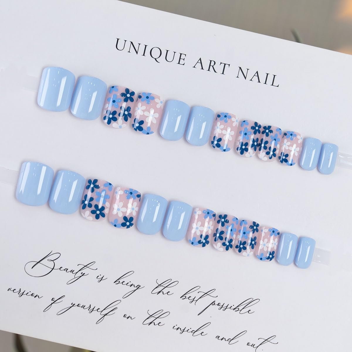 Safe and Sturdy Design: Unique micro-thickening design to prevent spring fake nails tips from cracking, glossy acrylic nails, they are harmless to humans, children and pets and gentle to your nails and skin. Manual brush gel treatment on the nail surface, pattern printing is clear and not easy to fade, providing you with a safe and comfortable nail experience