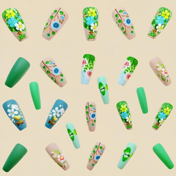 These ZIFANHU Spring fake nails are made of quality acrylic material nontoxic and gentle to your nails and skin durable and not easy to be scratched will give you a nice manicure experience .