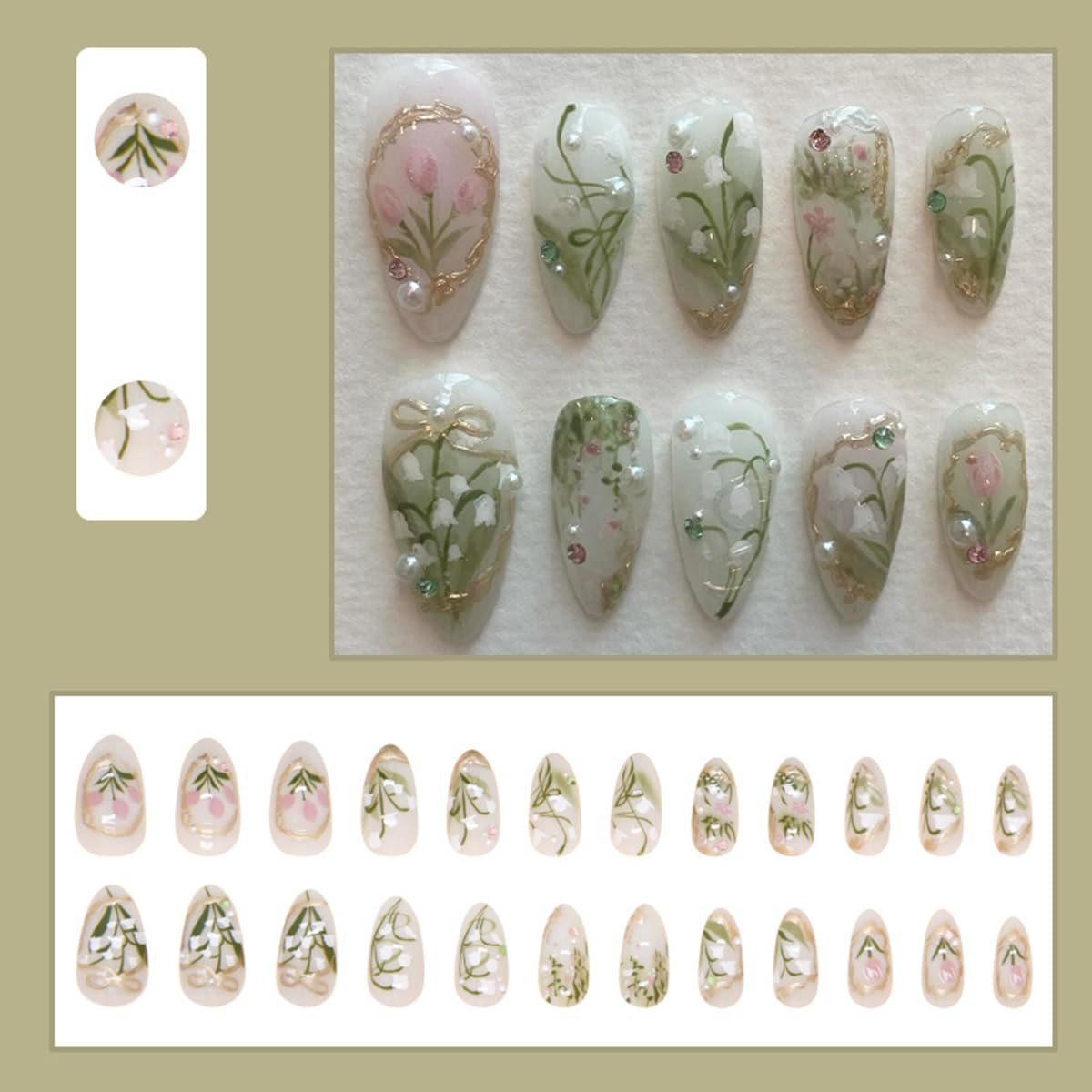 【Instructions for Use】These press-on nails are durable,patches adhere seamlessly to your natural nail and last up to 7 days or more,If you use glue it can be worn for up to 14-20 days, if you like to reuse it, it is recommended that you use jelly glue