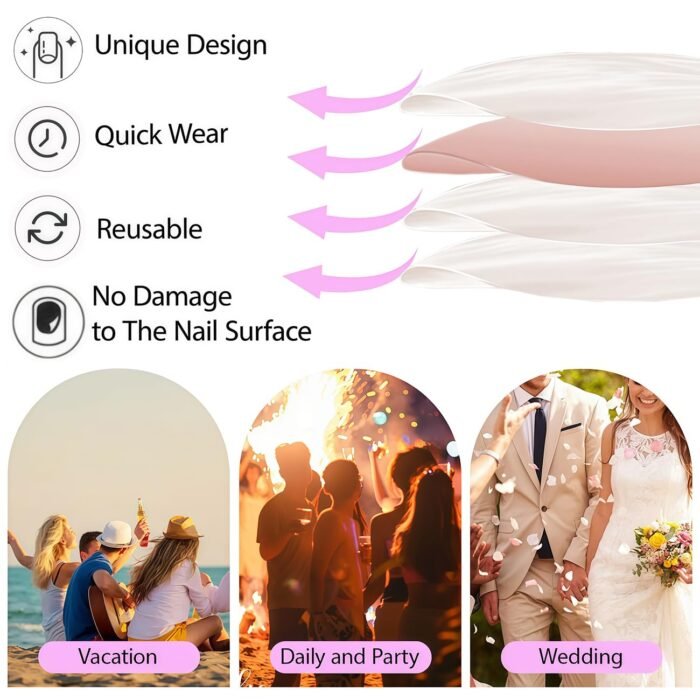 Easy to Wear Nail: No need to spend a lot of time going to the nail salon, just a few simple steps, you can have a nail salon like effect in 15 minutes, and you can easily change your nail style anytime, anywhere