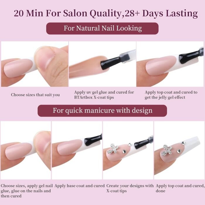Various sizes french press nail:These long coffin artificial nails have 12 different sizes for choice, so even mixed together they are easy to track and find. The different sizes ensure that they fit most people’s fingernails, whether your have a small or large nail feet, flat or slight curve nail bed