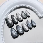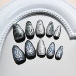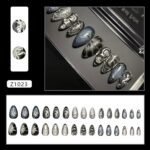 Package Contains: Our gothic press on nails designs 3d sliver false nails is exquisite and beautiful. It contains 24 pcs medium almond fake nails and a set of DIY nail art tools. There are 12 different sizes of fake nails. You can choose the most suitable black fake nails for yourself.