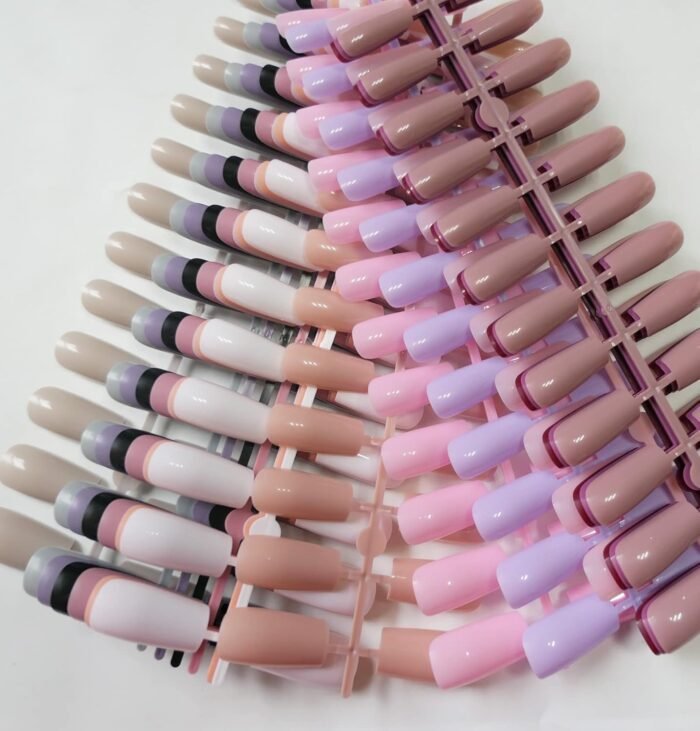 French style medium square nail shape with a bit c curve, can sticked on your nails well with strong nail glue, 10 sizes available, pre-numbered from size 0 to size 9, enough sizes for you to choose the suitable size tips that fit your fingernails. Can fit for wide, natural or narrow nail beds.