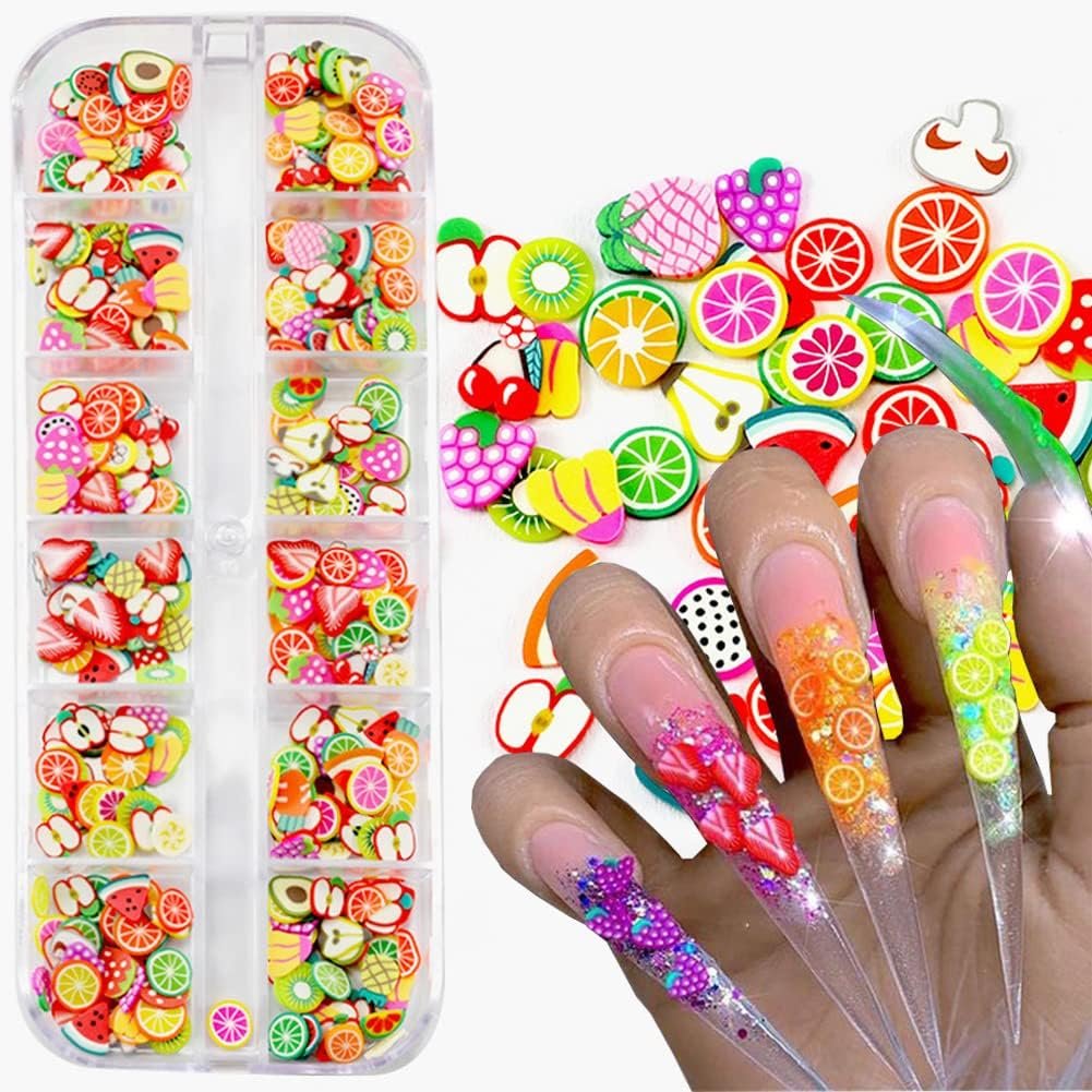 3D Fruit Slices: 12 Grids Fruit Nail Art Slices have 12 different shapes nail sequins, convenient to carry , you can put in the bag when go to travel, go to beach or other activities, enjoying the DIY nail art time on the way.