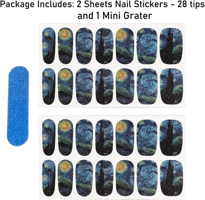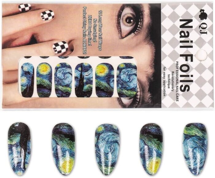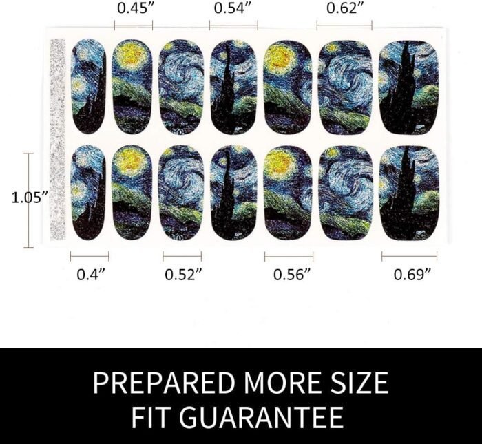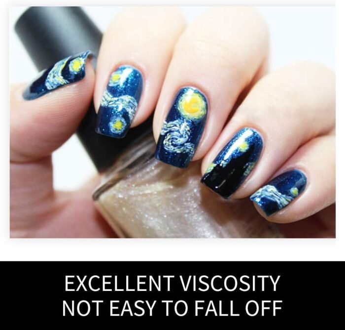 SAFETY AND DURABLE: The starry night nail arts made by non-toxic PVC and premium glue. The nails will keep lustrous if they were pasted in the correct way.