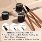 【You Will Get】 Our chrome metallic painting gel set includes 3pcs 0.18 fl oz./5ml painting gel nail polish ( gold, silver, champagne) and 3pcs nail art brushes in different sizes, can be used to outline the lines accurately and draw different patterns to create your own nail art designs.