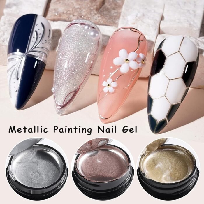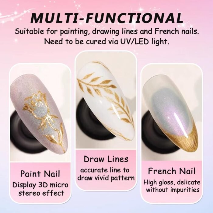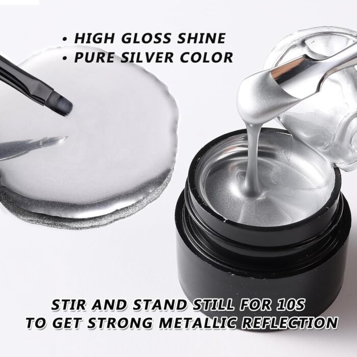 【Multi-functional Metallic Painting Gel】 This 3d metallic silver nail art gel nail polish can be used to create various nail art designs, such as accurate painting, graffiti, French nails, mirror chrome nails and micro sculpture nails, from simple and minimalist looks to intricate and detailed patterns. Its reflective and shiny nature adds depth and dimension to your nail art.