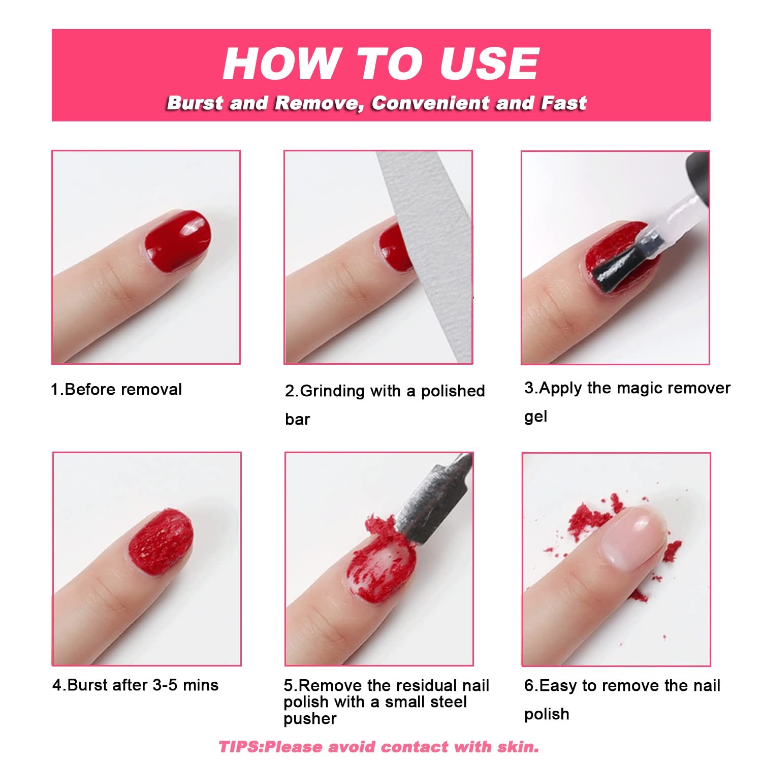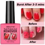 Easy to Use, Convenient and Fast: There is no need to soak and wrap the nails to remove the nail polish anymore. Just apply the remover gel on nails, wait a few mins, the nail polish will burst and fall off by itself. Solve the problem of cleaning nail polish by yourself within 3-5 mins