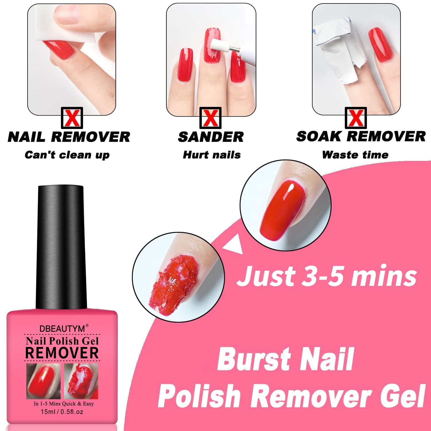 DBEAUTYM 4 Pack Gel Polish Remover: Gel Nail Polish Remover for UV gel polish nails. Remove the nail polish in 3-5 mins, convenient and fast. Don’t need to go to a nail salon, save your money and time.