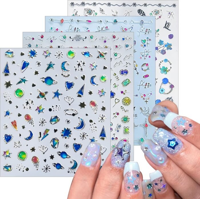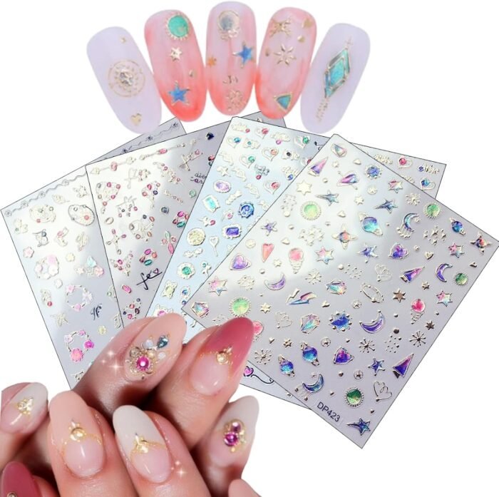 Sparkly Heart Nail Stickers- You will get 4 sheets star nail art stickers for acrylic nails supply, many pattern for you to choose, colorful floral nail designs, and satisfy your rich imagination of nail DIY