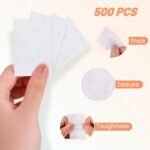 500pcs Lint Free Nail Wipes:These nail polish remover wipes are designed to minimize lint and fiber residue, ensuring a clean and smooth application of nail products.Regular cotton can sometimes be rough or have uneven textures, which may cause friction and potentially damage the nails