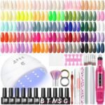 ❤Gel Nail Polish Kit with U V Light and Drill: The gel nail polish kit starter kit includes 35 colors gel nail polish, Upgraded u v light, Nail Drill, 5pcs Top and Base Coat, Nail Art tools. A complete gel nail polish kit comes with everything you need, suitable for nail salon, beginners, DIY at home.