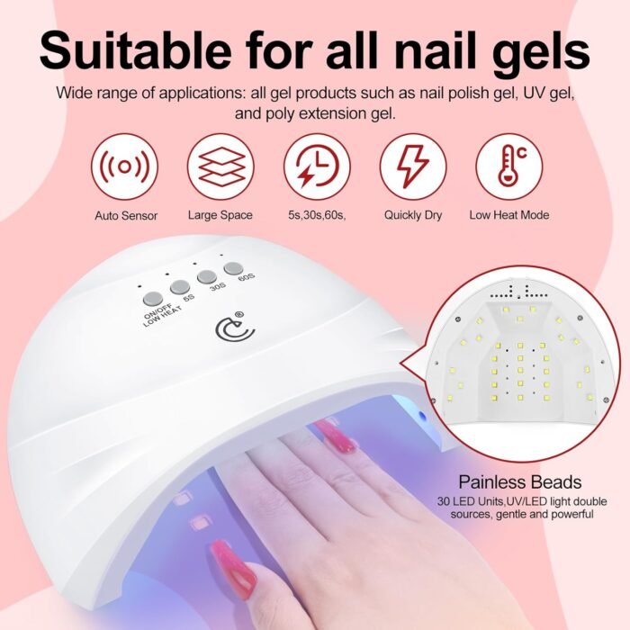 ❤U V Light & Nail Drill: This gel nail polish kit contains a Nail Light and Nail Drill. The u v Lamp is automatic sensing, large space, and designed with 30 pcs led beads, low heat mode, 3 Timer Setting (5S, 30S, 60S) for you choose. The nail lamp is suitable for all gel, more convenient and fast than others, easy to use. The nail Drill is more effective than traditional nail files, and can be used for grinding, cutting, polishing, and so on, makes your manicure job much easier.