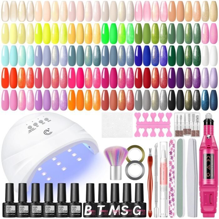 Customers find this nail polish kit provides salon-quality results and comes with everything needed to create stunning manicures, including 5 different top and base coats. Moreover, the product is easy to use, particularly for beginners, and offers great value for the price. The UV lamp and electric drill work well, and customers consider it a great gift option. However, customers note that the polish bottles are small.