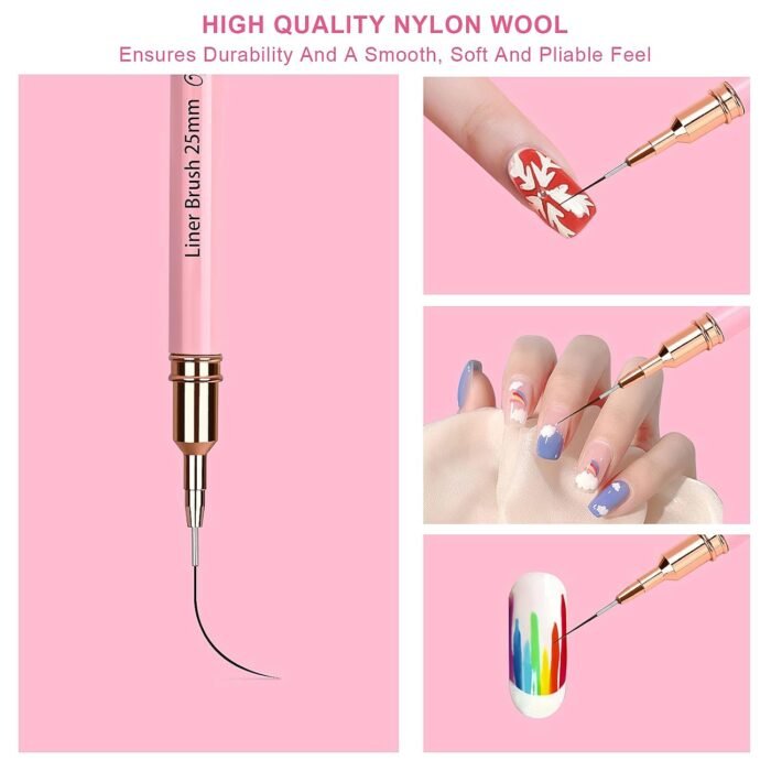 Stylish And Beautiful Appearance And All-Metal Pen Body Construction Highlights A Sense Of High Class That You Will Immediately Fall In Love With When You Look At It.Newly designed and remodeled by experienced craftsmen, the pen is lightweight and comfortable, conforming to the human body for grip and application.Professional Grade Nail Line Brushes Are Made Of Premium Quality Nylon And Are Tested At Every Step Of The Process Using The Most Stringent Quality Testing Of Its Peers To Ensure Durability And A Smooth, Soft And Pliable Feel.