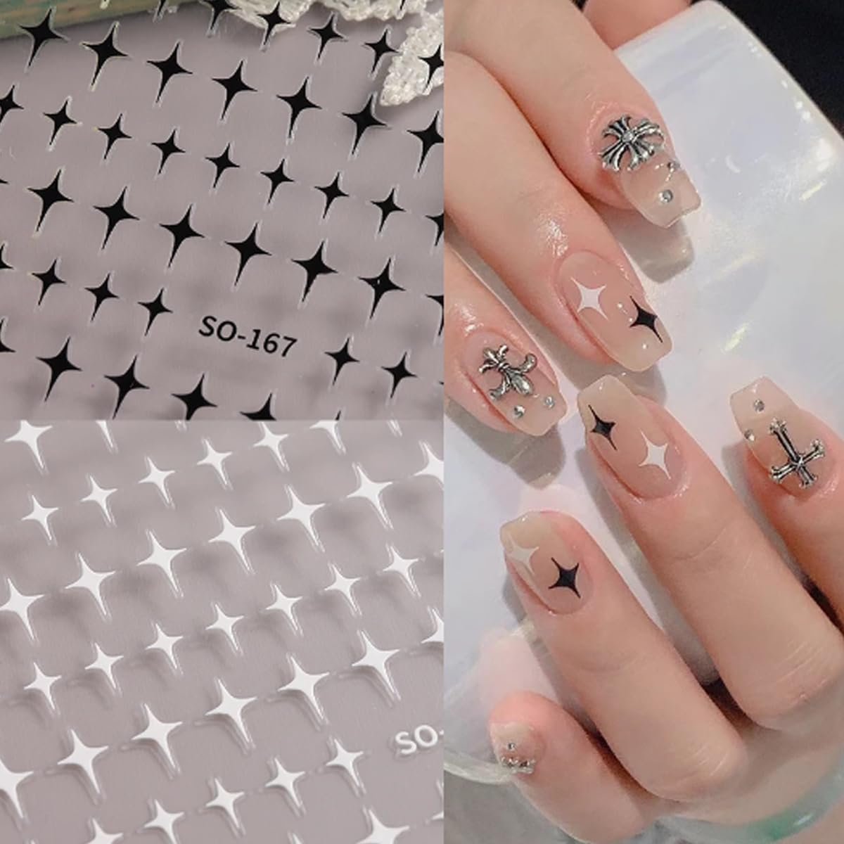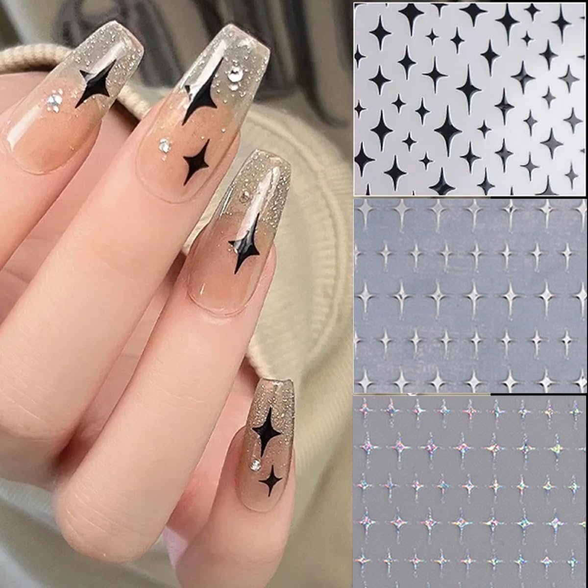 【Exquisite Design】3D self-adhesive stars nail art design stickers is simple and quick to use, nail decals work great on bare nails, they will stay on for a long time and will not peel off your nails, enjoy the feeling of nail art.