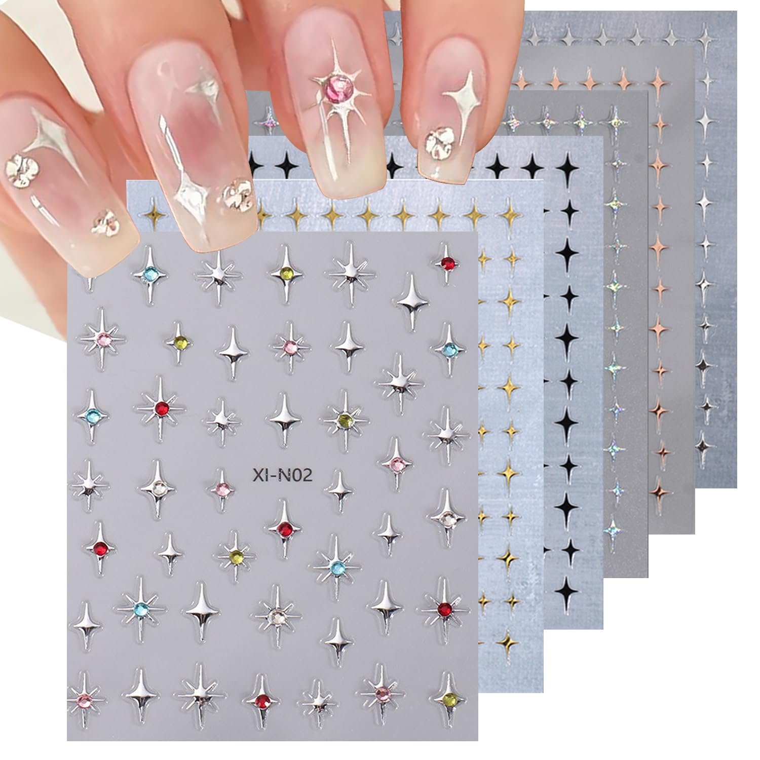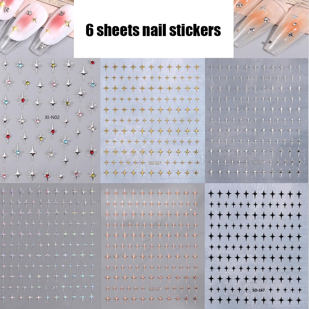 6 Sheets Glitter Star Nail Stickers for Nail Art B…