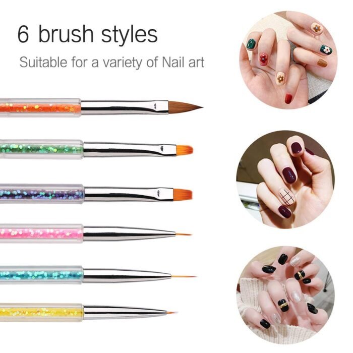Nail art brushes,The pen body is made of high quality Alloy + Flash sequins+ Acrylic material, The nib is made of high-quality nylon hair.Equipped with the shine Flash sequins of various colors inside the handle, unique and fashionable design