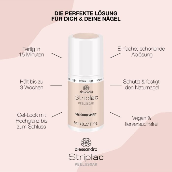 alessandro Striplac Peel Or Soak Nail Polish is a revolutionary product that allows you to do your own professional mani at home. It takes less than 15 minutes and lasts up to 3x longer than conventional nail polish. There is no annoying drying time because it is dried under a LED lamp. Alessandro Striplac Peel Or Soak nail polish is an indispensable companion for everyone who wants perfect nails but just does not have the time to wait for nail polish to dry.