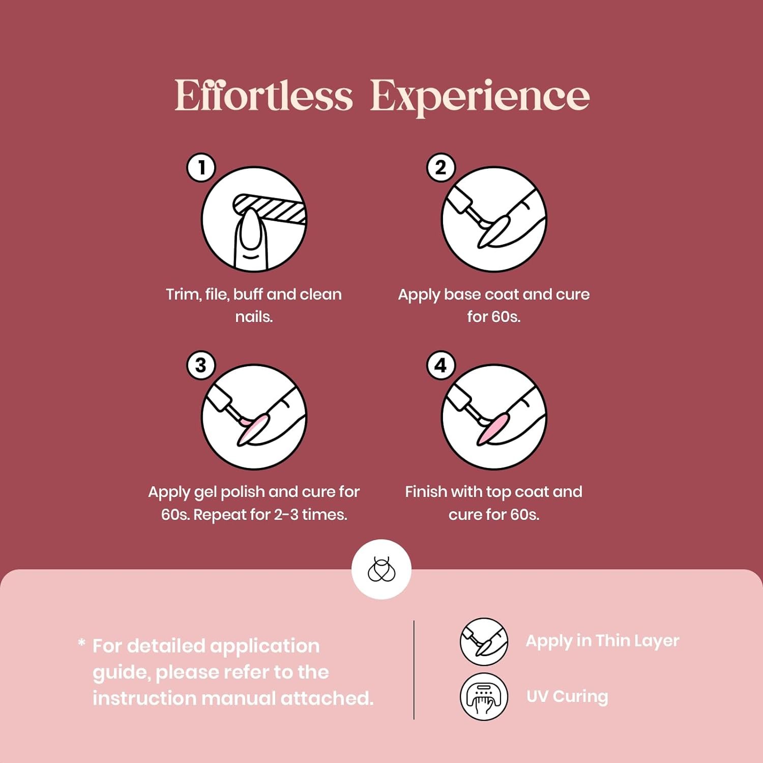 What You Get: 20 x Mini Gel Polish Colors (5ml each bottle) + 3 x No Wipe Base and Glossy & Matte Top Coat (7.5ml each bottle).