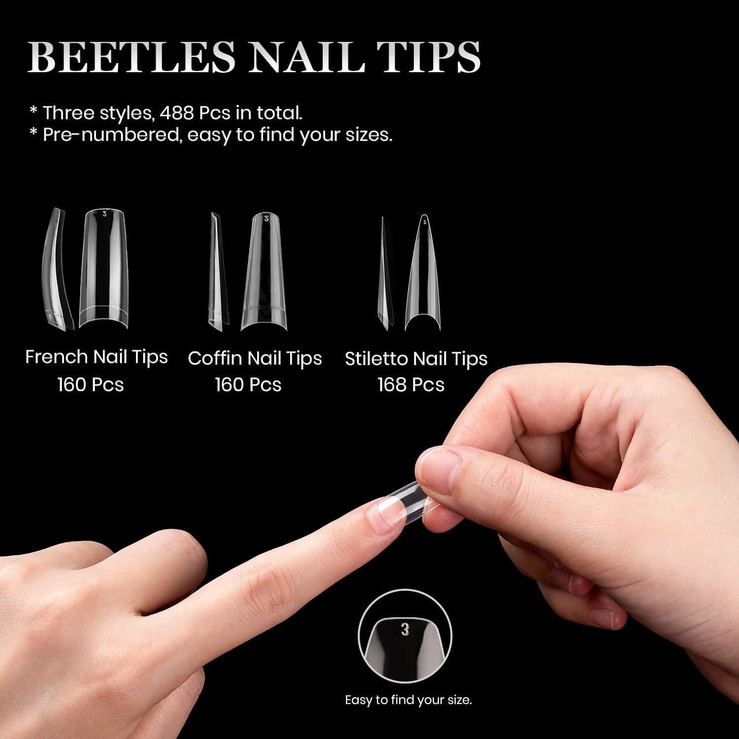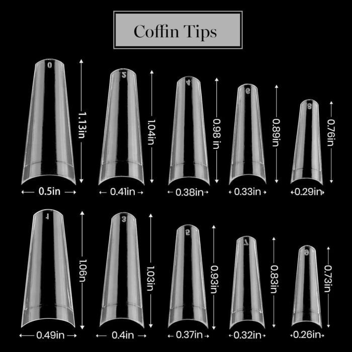 VARIOUS STYLES: There are 3 styles of Coffin Ballerina Stiletto nail tips, total 488 pcs acrylic nail tips with 10 different sizes. Easy to choose the perfect style for every and any event