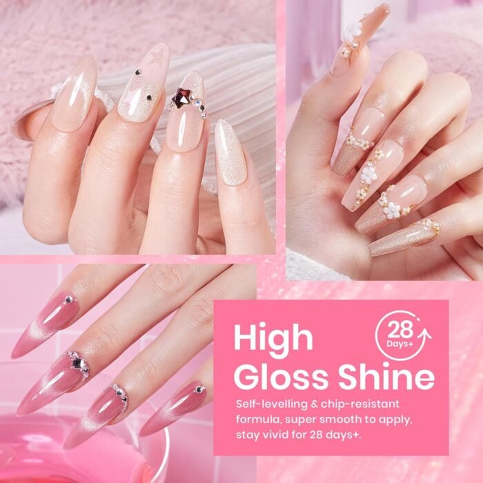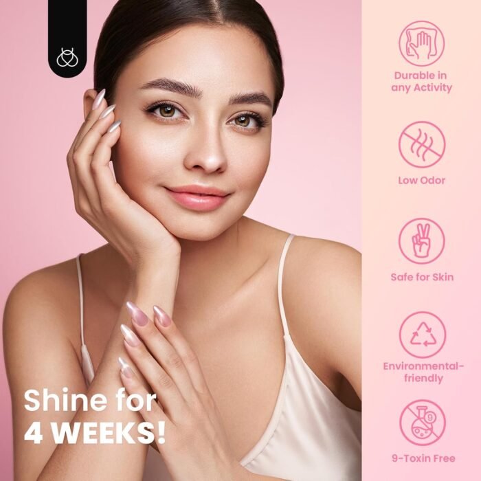 Long-Lasting Shine:Pink Cat eye gel nail polish lasts for 28+ days with perfect shine under proper application – With base gel top coat applied throughout the entire process and needing to be cured under LED/UV light for 60-120 seconds.