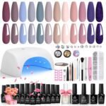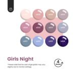 【Easy Application and Good Tenacity】Beetles Girls Night Collection 12 gorgeous colors gel polish set with low odor – No harsh ingredients or adhesives that lead to damaged nails. This series of nude pink purple blue gray burgundy red glossy nails set is long lasting for 21+ days with perfect shine under proper application.