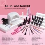 【Beetles All-in-one Nail Kit】36W Nail lamp with adapter*1, Gorgeous Colors Gel Polish 5ml*12, Base Coat 7.5ml*1, Top Coat 7.5ml*2 (Glossy & Matte), Cuticle oil 7.5ml*1,Decoration Sealing Gel 7.5ml*1, Nail Charms*6, Multifunctional Nail Art Pens/Brushes*3, Nail Cap Handle*1,Tweezers*1, Cuticle Fork*1, Cuticle Pusher*1, Nail Clipper*1, Nail File*1, Nail Buffer*1, Nail Separator*2,Gold/Silver Foil*2,Nail Striping Tape*5 and Brush Duster*1. You can enjoy doing your nails at home for Holidays.