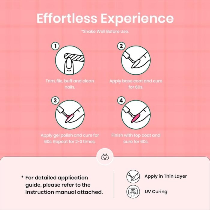 【Healthy and Glossy Shine】Beetles 20 pcs gel nail polish kit is cruelty-free and has low odor. With good tenacity and highly pigmented, beetle’s premium gel material brings you a brilliant shiny finish, smooth appearance, and flawless coverage.
