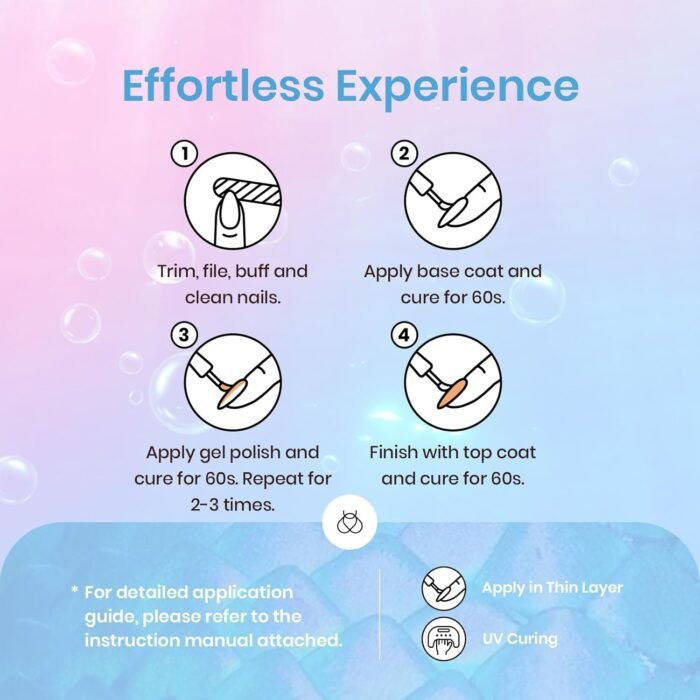 Easy Application and Long-lasting: Beetles Pearl gel polish is long-lasting for 28+ days with a perfect shine under proper application – with a base gel top coat under the full application process. Highly recommend a minimum of 60-120 seconds with a UV LED light.