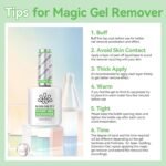 【3 Steps to Remove】1. Buff the top coat 2. Apply liquid latex on the skin around the nail (if any) 3. Apply gel nail polish remover and wait 2-5 minutes. Gel nail polish will burst and then it is easy to scrape off with the included tool. Note: Please read the instructions carefully before use for best results.