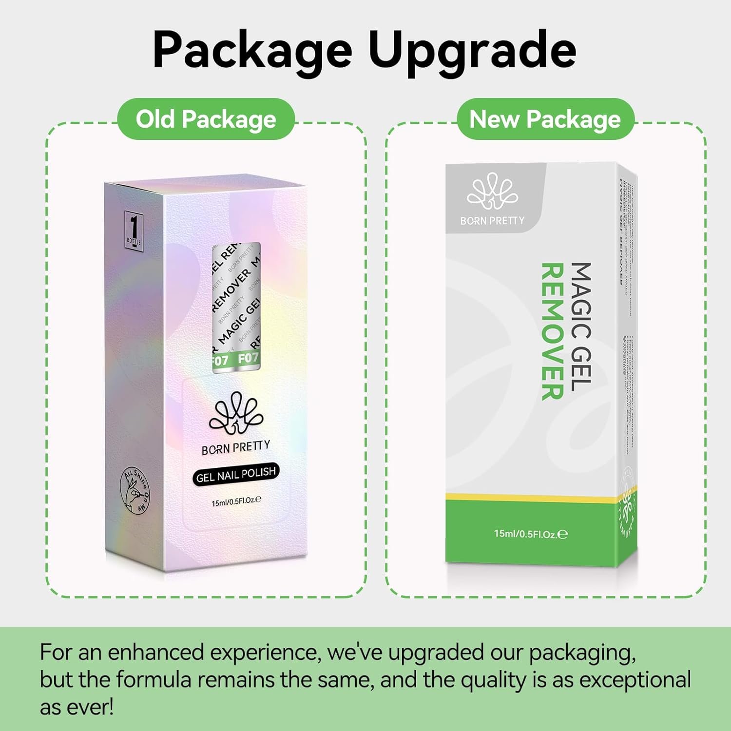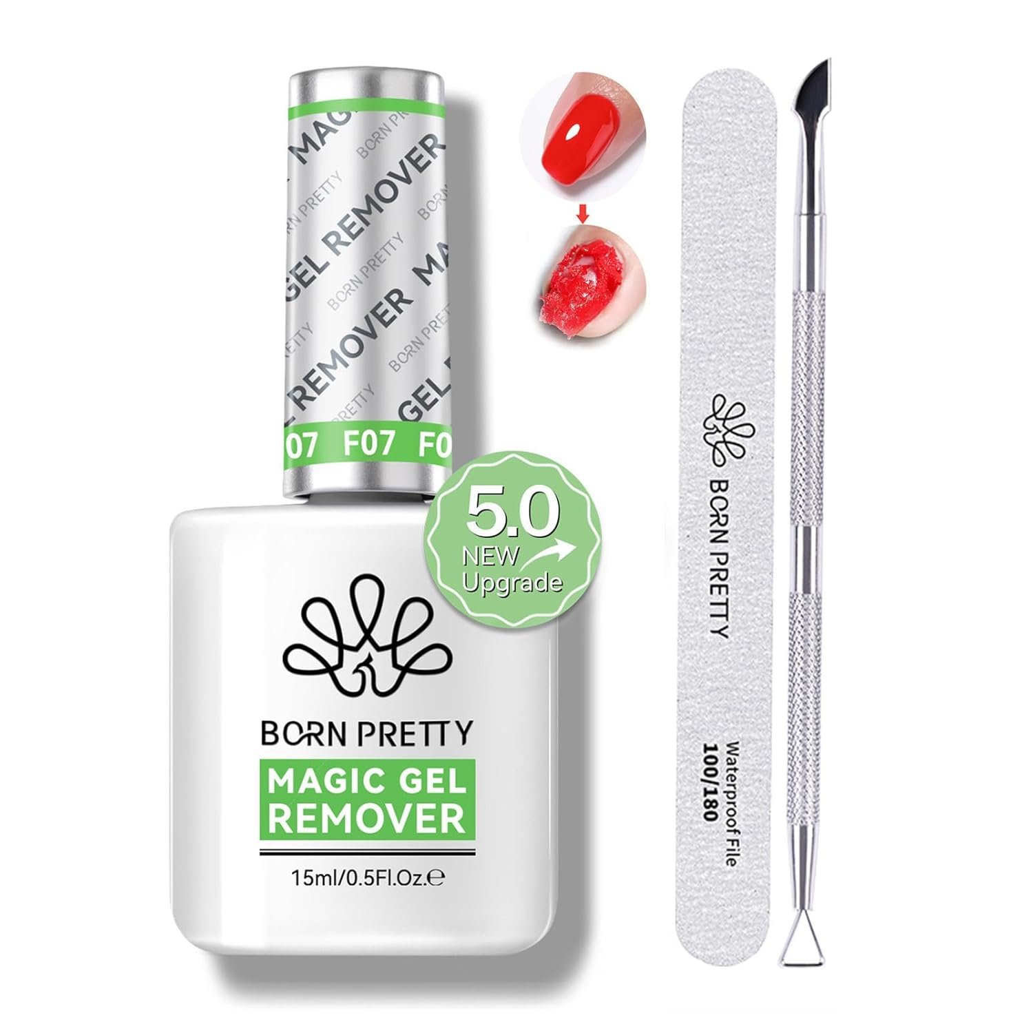 【3 Steps to Remove】1. Buff the top coat 2. Apply liquid latex on the skin around the nail (if any) 3. Apply gel nail polish remover and wait 2-5 minutes. Gel nail polish will burst and then it is easy to scrape off with the included tool. Note: Please read the instructions carefully before use for best results.