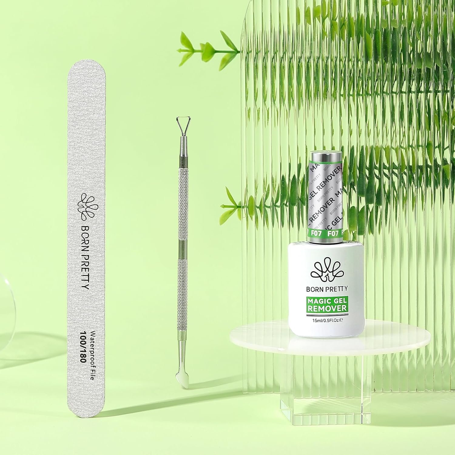 【Gel Nail Polish Remover Kit】The gel polish remover kit comes with a 15ml bottle of gel removal, a cuticle pusher and a nail file. It can remove ordinary nail polish, U V gel nails, shellac, etc. There is no cumbersome removal process, allowing beginners or nail art enthusiasts to easily remove nail polish at home while lying on the sofa!