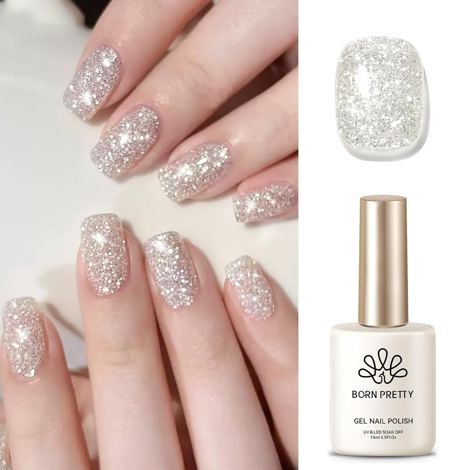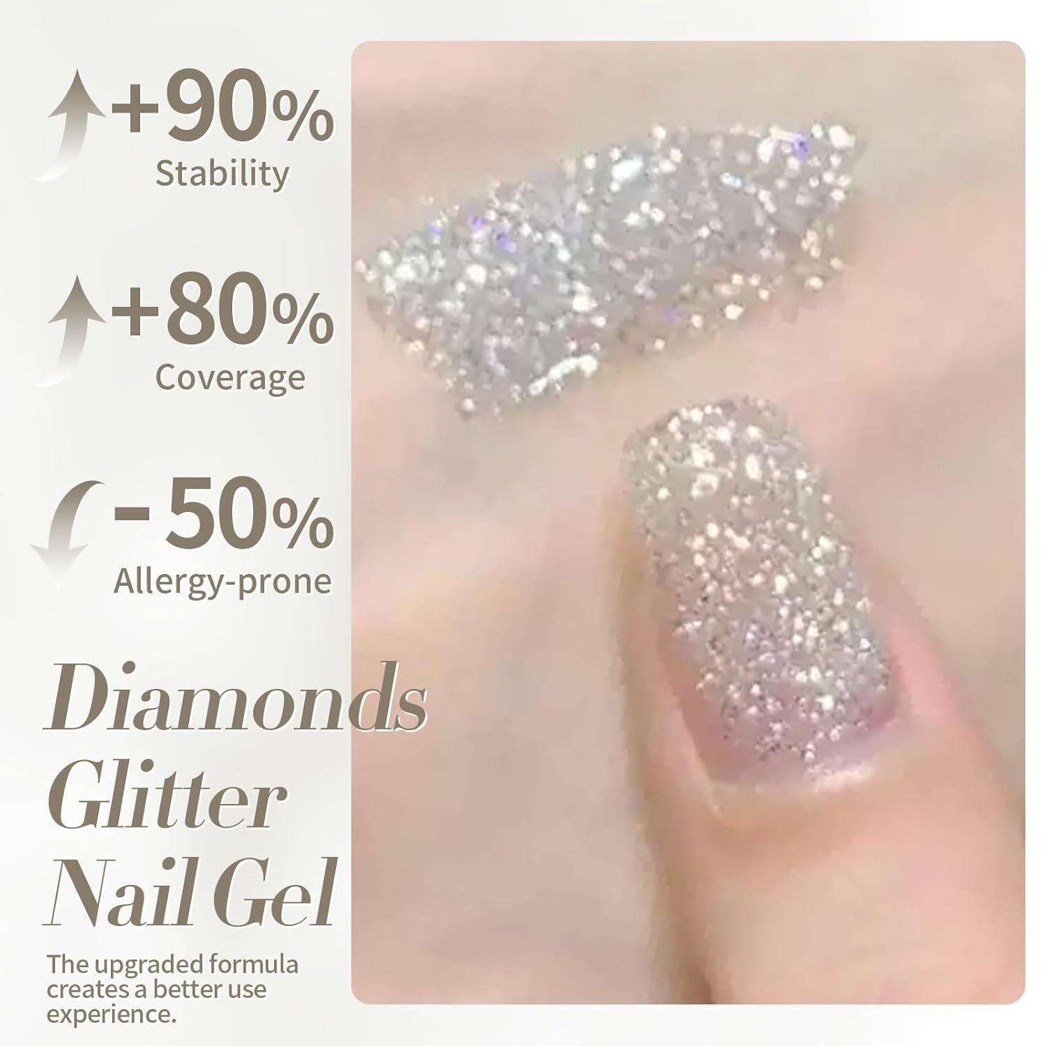 [Glitter Gel Nail Polish]: Features a stunning silver glitter powder for a dazzling, eye-catching nail art look; Perfect for creating unique and stylish manicures that stand out at parties, weddings, or everyday wear