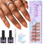 ALL IN ONE KIT: BTArtbox press on nails kit includes 160pcs short coffin XCOATTIPS,10ml 4-in-1 nail glue gel, 10 ml top coat, a portable UV/LED nail lamp and 1pc nail file. We are ready for all you need. You can easily make your nails extend and even nail novices can easily enjoy the fun of nail DIY!