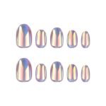 Package Contains:1Box 24 Pcs chrome press on nails, 24 pieces of jelly glue, 1 mini nail file, 1 wooden stick.Cat eye fake nails come in 12 different sizes, which are perfect for any finger.