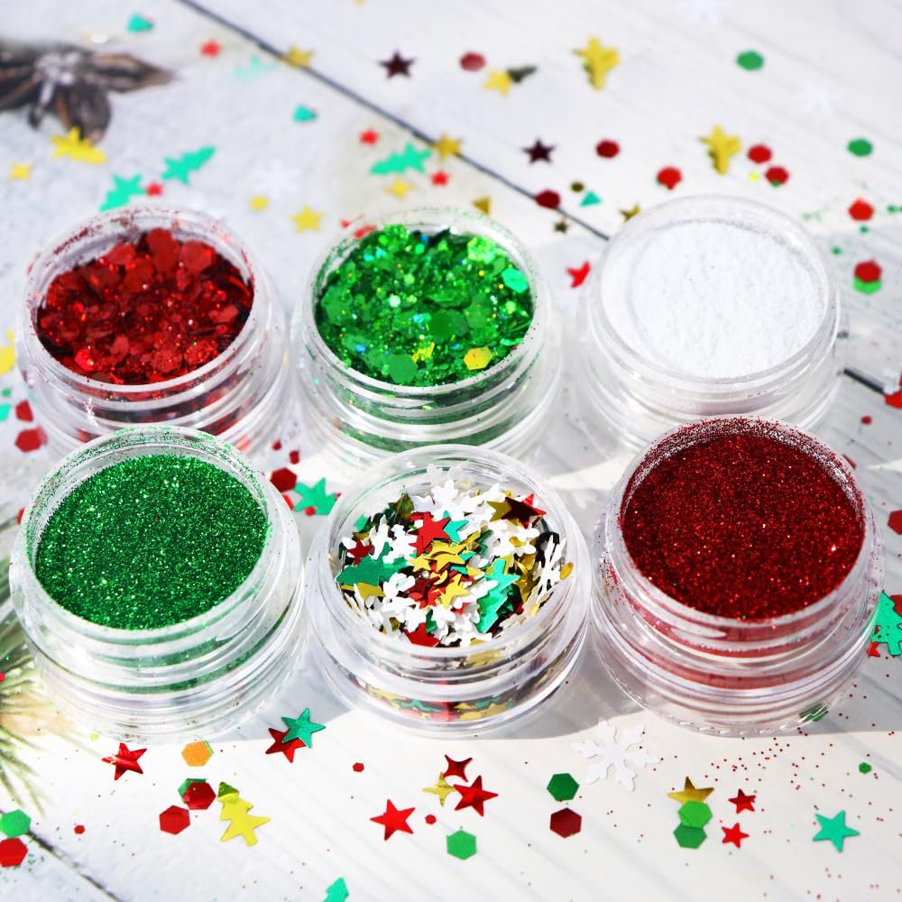 Package Include: 6 jars Christmas nail glitters come with 6 designs with separate storage space, shinning Christmas nail designs. An instructions card is included in the package.