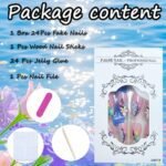 Package Contains: You will get 24pcs spring summer press on nails with designs, 1pc nail file, 24pcs nail jelly stickers and 1pc wooden stick for removing false nails tips. No need to buy other things, you can get the nail salon-like effect