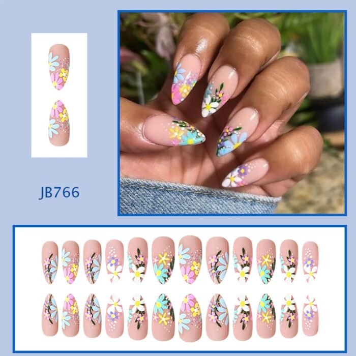Package Contains: You will get 24pcs spring summer press on nails with designs, 1pc nail file, 24pcs nail jelly stickers and 1pc wooden stick for removing false nails tips. No need to buy other things, you can get the nail salon-like effect