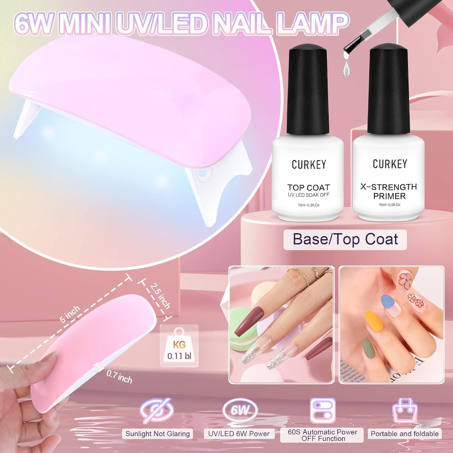 【Professional Acrylic Set with U V Light】Nail kit light is using a pocket and a new folding design that is suitable girls to fit into the handbag and enjoy nail salon at home! Mini 6w nail light automatic on/off 45s/60s timing set up. Nail kit acrylic set includ nail dryers cure your nail art design with low heat, painless that protects your hands. Acrylic nail kit with light is easy to use at studio for the nail art beginner!