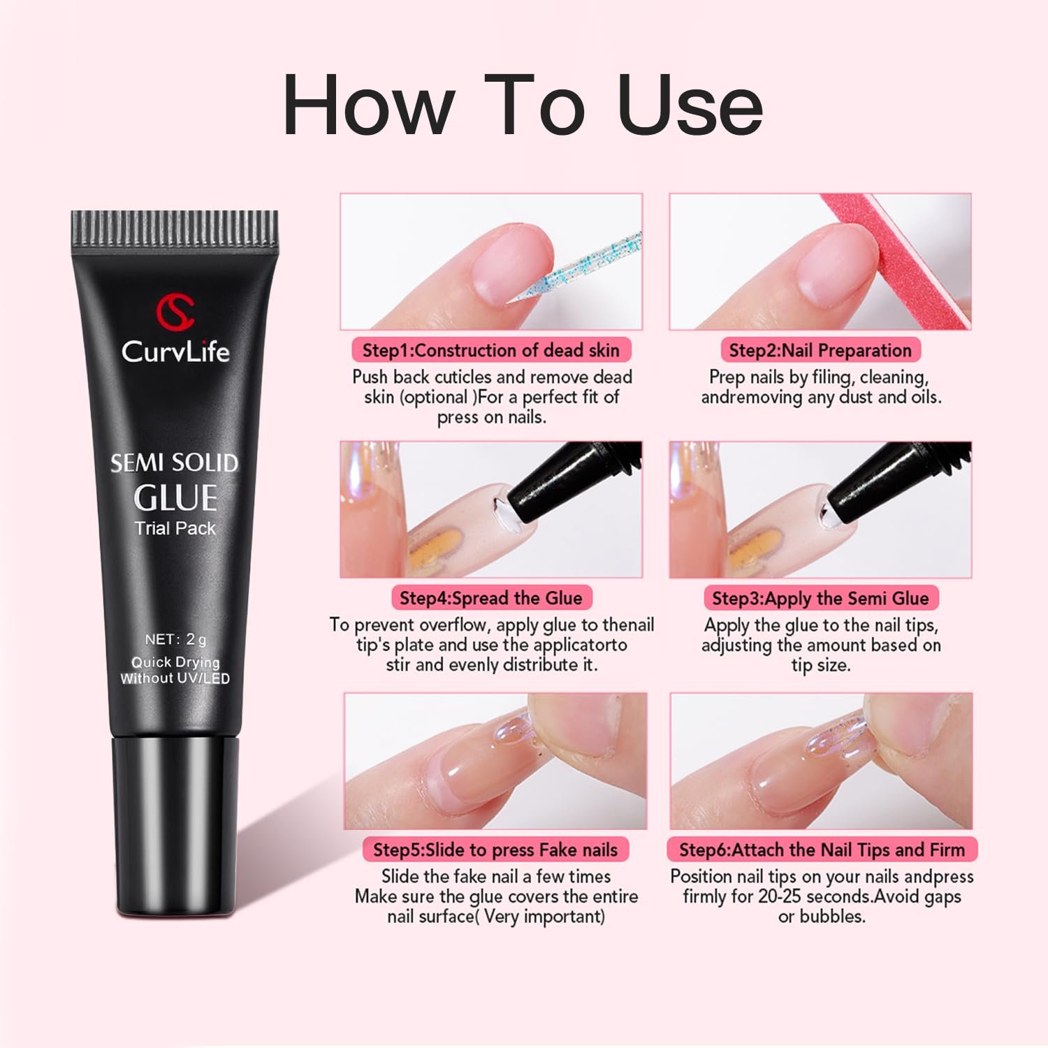 CurvLife Nail Tips Semi Solid Nail Glue 2g (5pcs) …