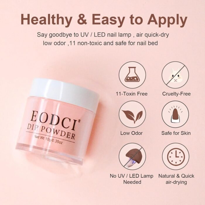 【No Lamp Needed】Eodci Nail Dipping Powder does not require UV/LED light to cure, is skin friendly while avoiding skin darkening and damage, safe and easy to use, suitable for beginners and professional nail salons.